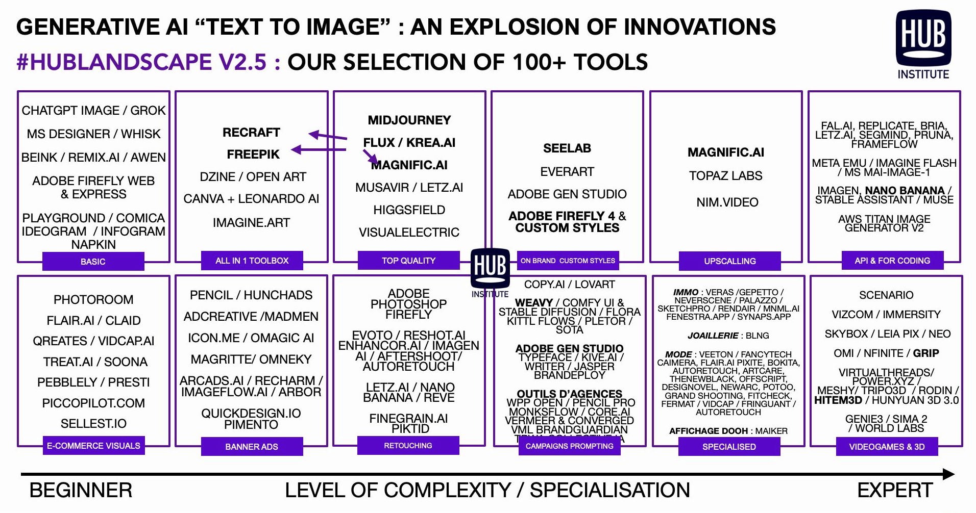 Le marché de l’IA générative évolue à grande vitesse chaque semaine. Nos HUBLandscapes vous aide à identifier les meilleures solutions du marché, comprendre les usages clés et identifier les outils les plus pertinents pour votre métier.